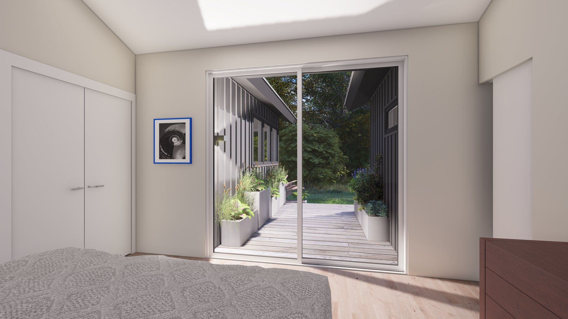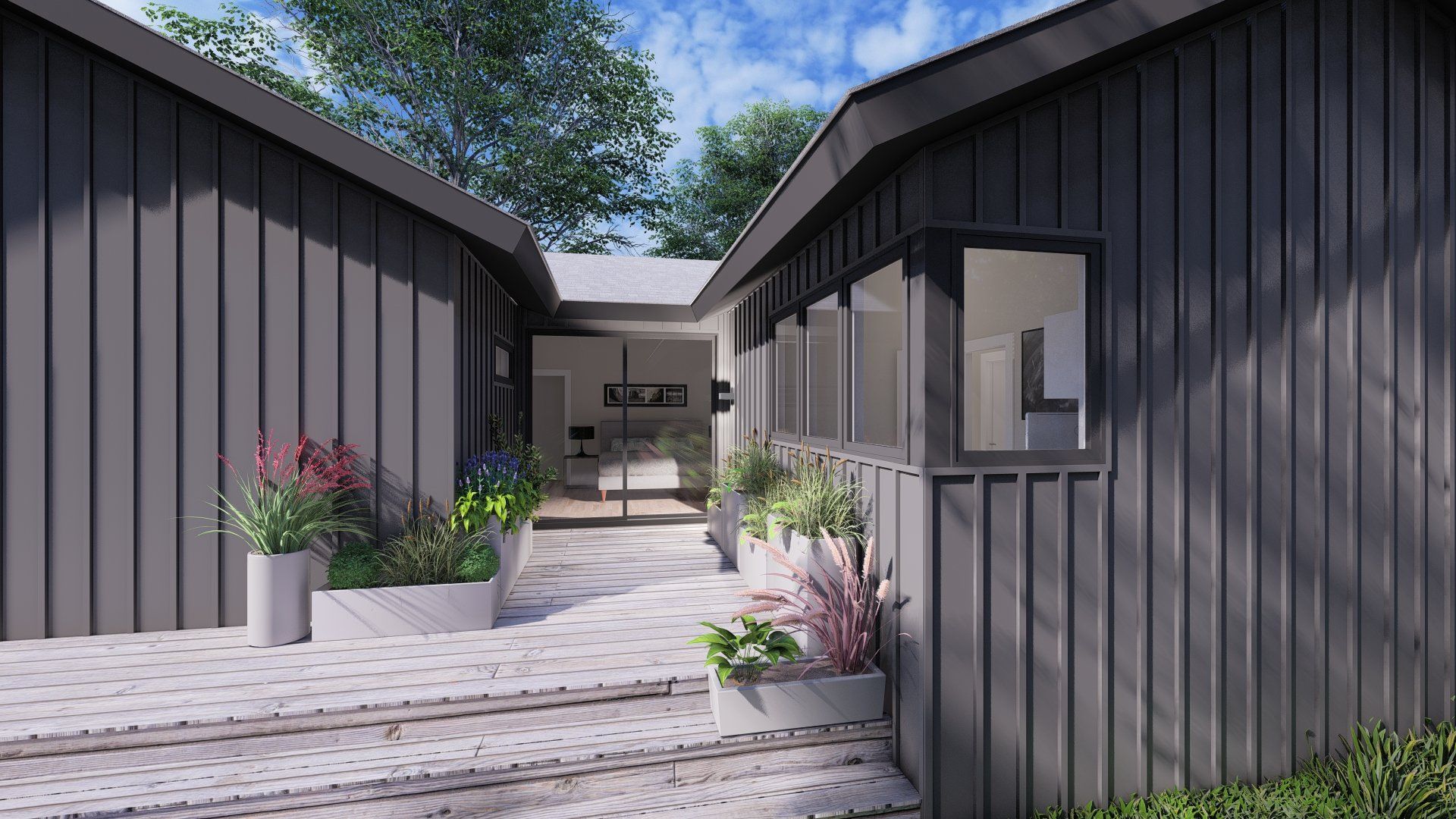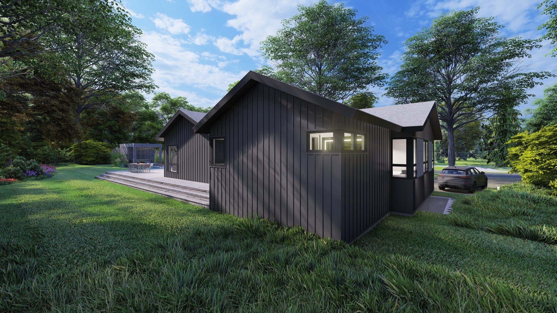 This project has currently been approved and will start construction April, 2021. The house was an existing ranch style where we are adding approximately 1,000 SF of living and sleeping spaces. The design intent was to keep the horizontally of the house and infuse a mid-century modern aesthetic.