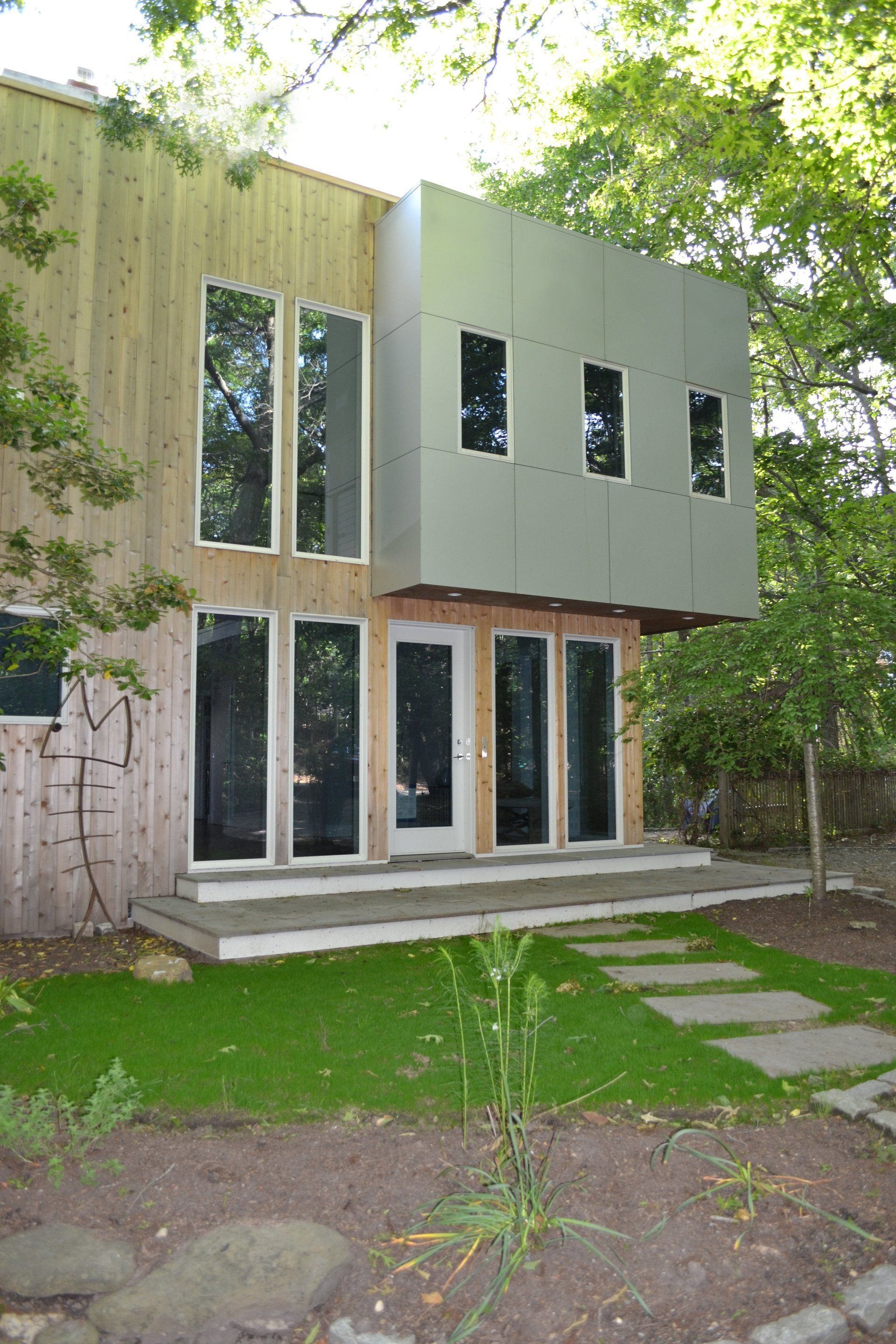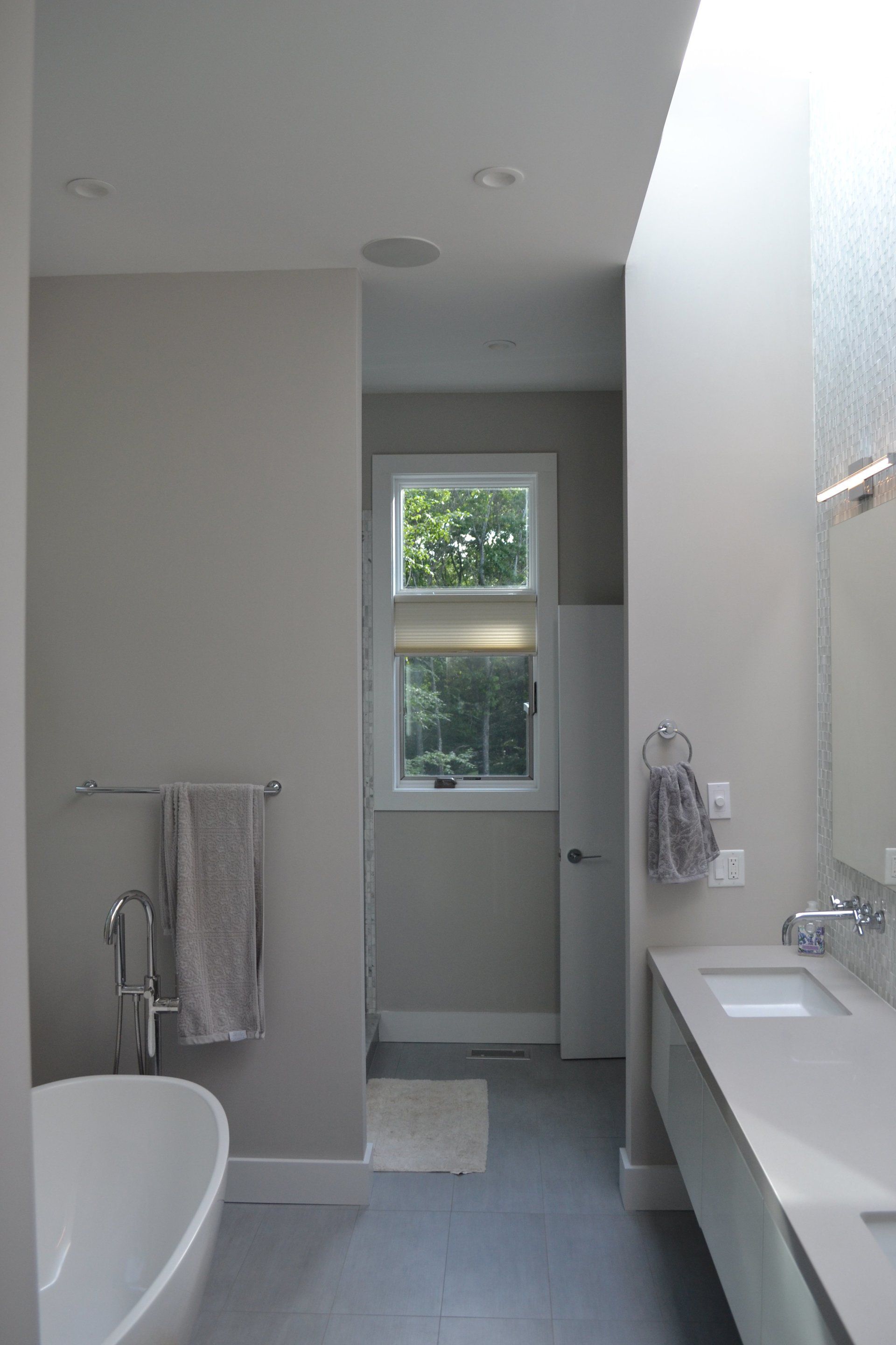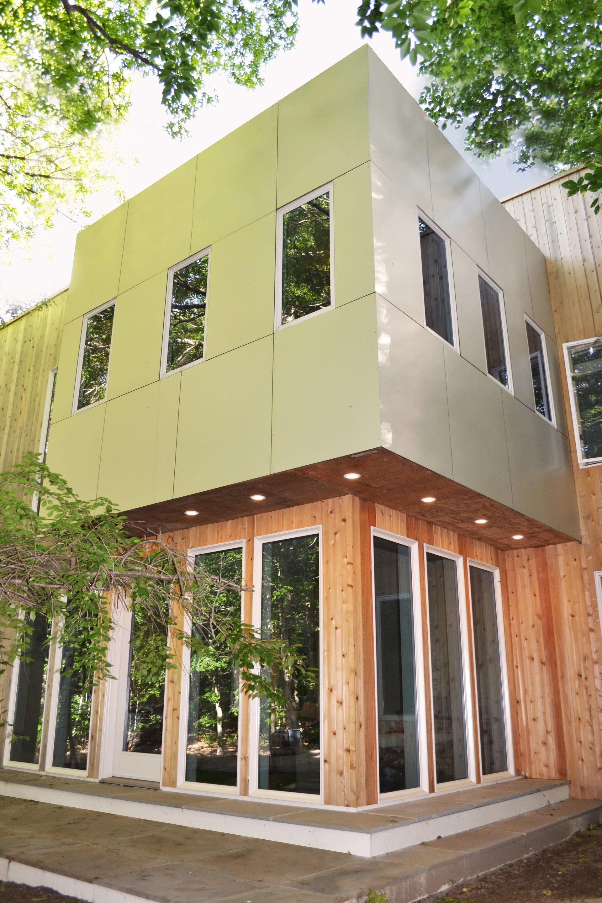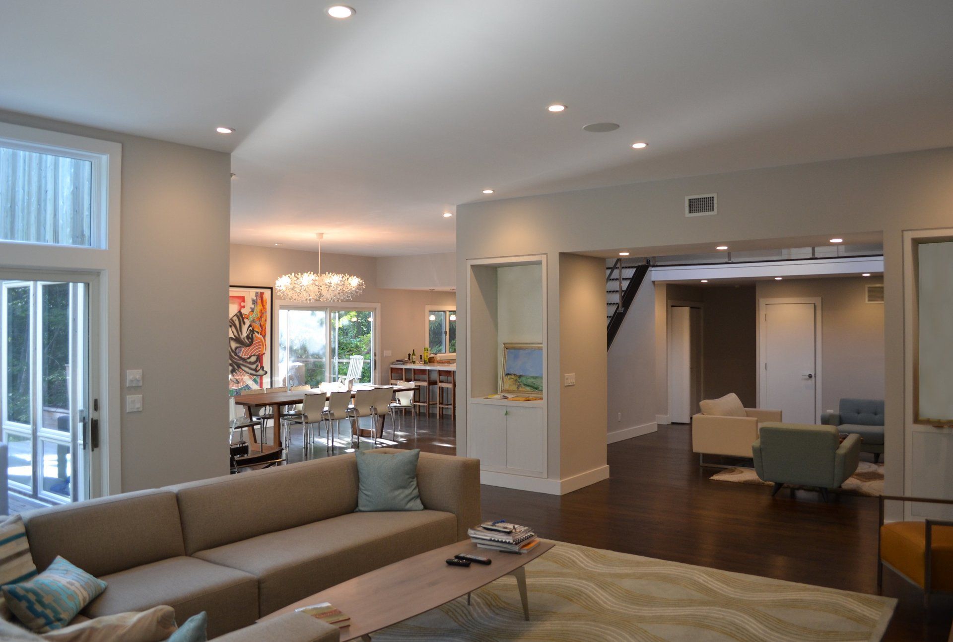This renovation/ addition transformed a small 1970's saltbox style house into a spacious weekend retreat for the clients where they could enjoy a private setting in the woods, yet still go to the beach a few minutes away. Large expanses of glass were used to bring the exterior inside.