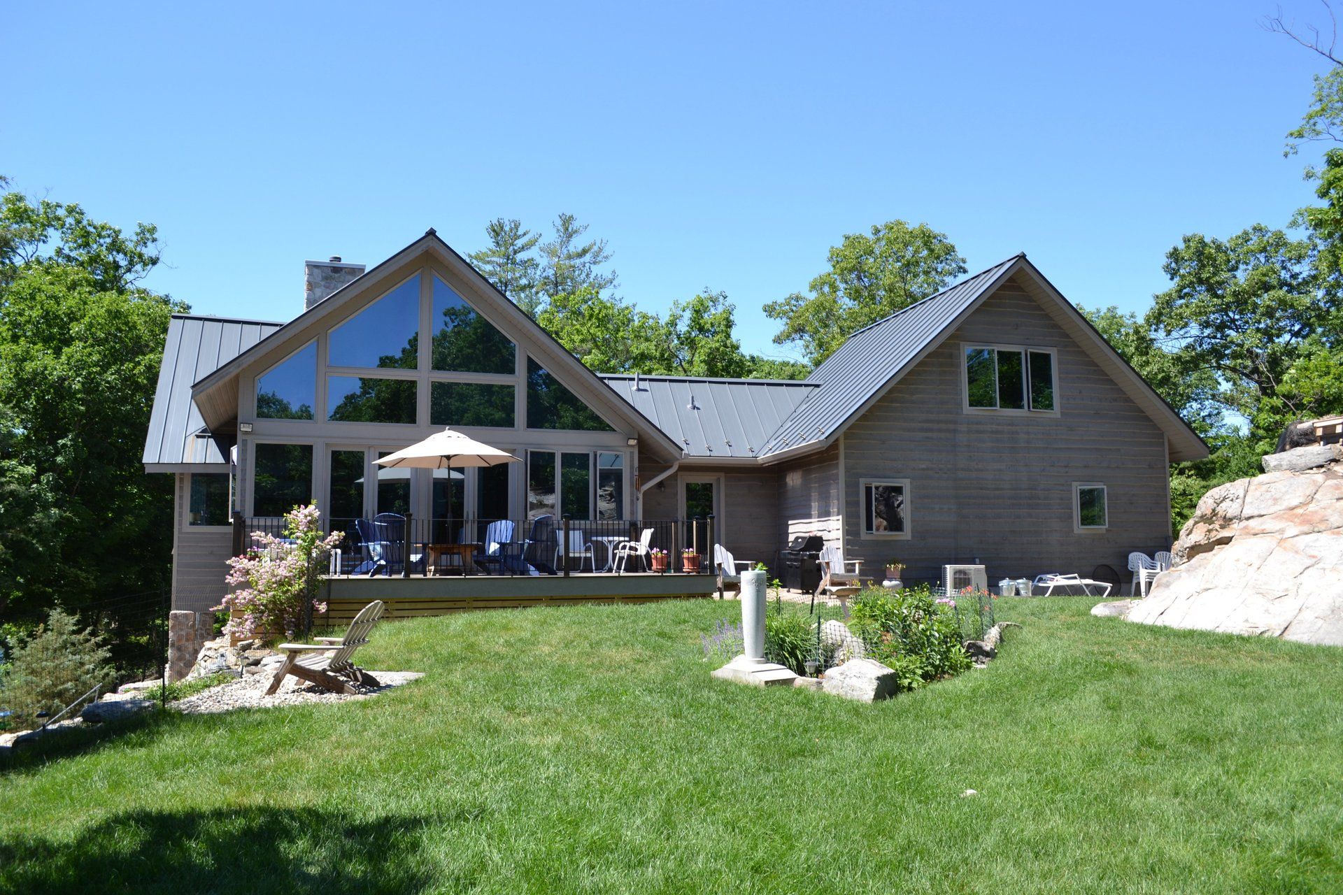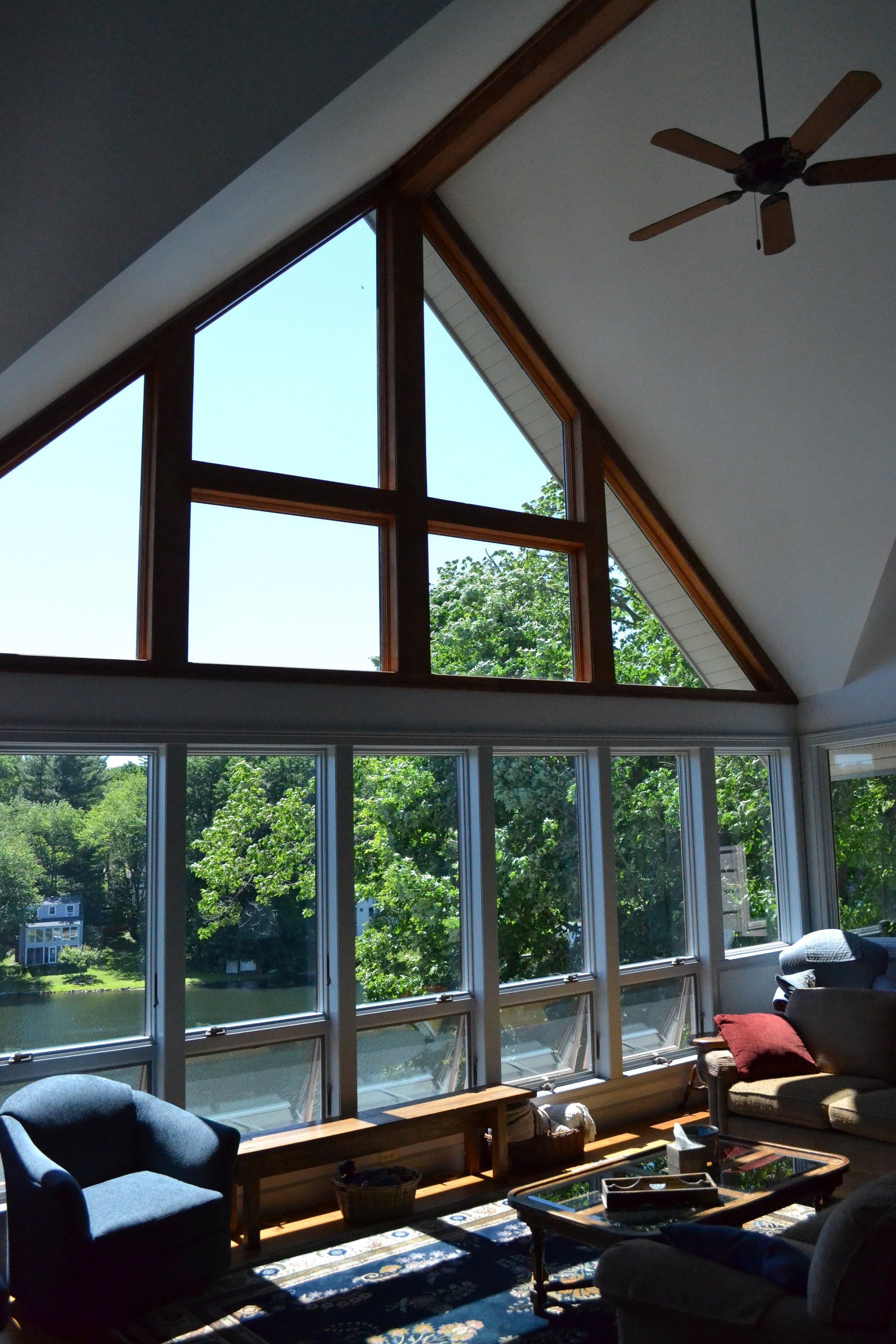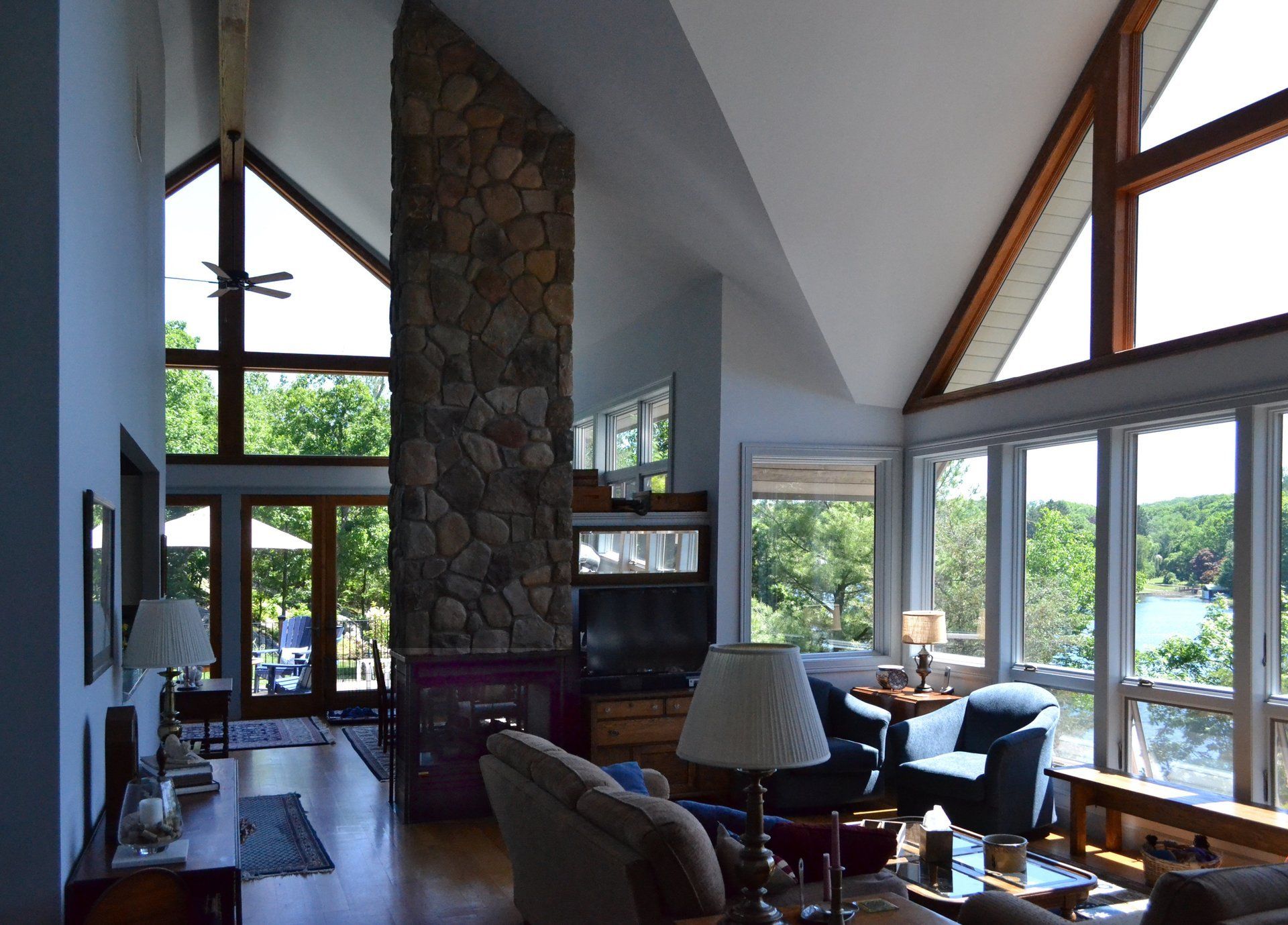 This new home was built on the last available lot on Lake Lenape in Andover, NJ. The site was a challenge due to the steep slopes and sheer amount of rock that we had to work with. We took advantage of the high perch and developed viewpoints from all parts of the interior and site.